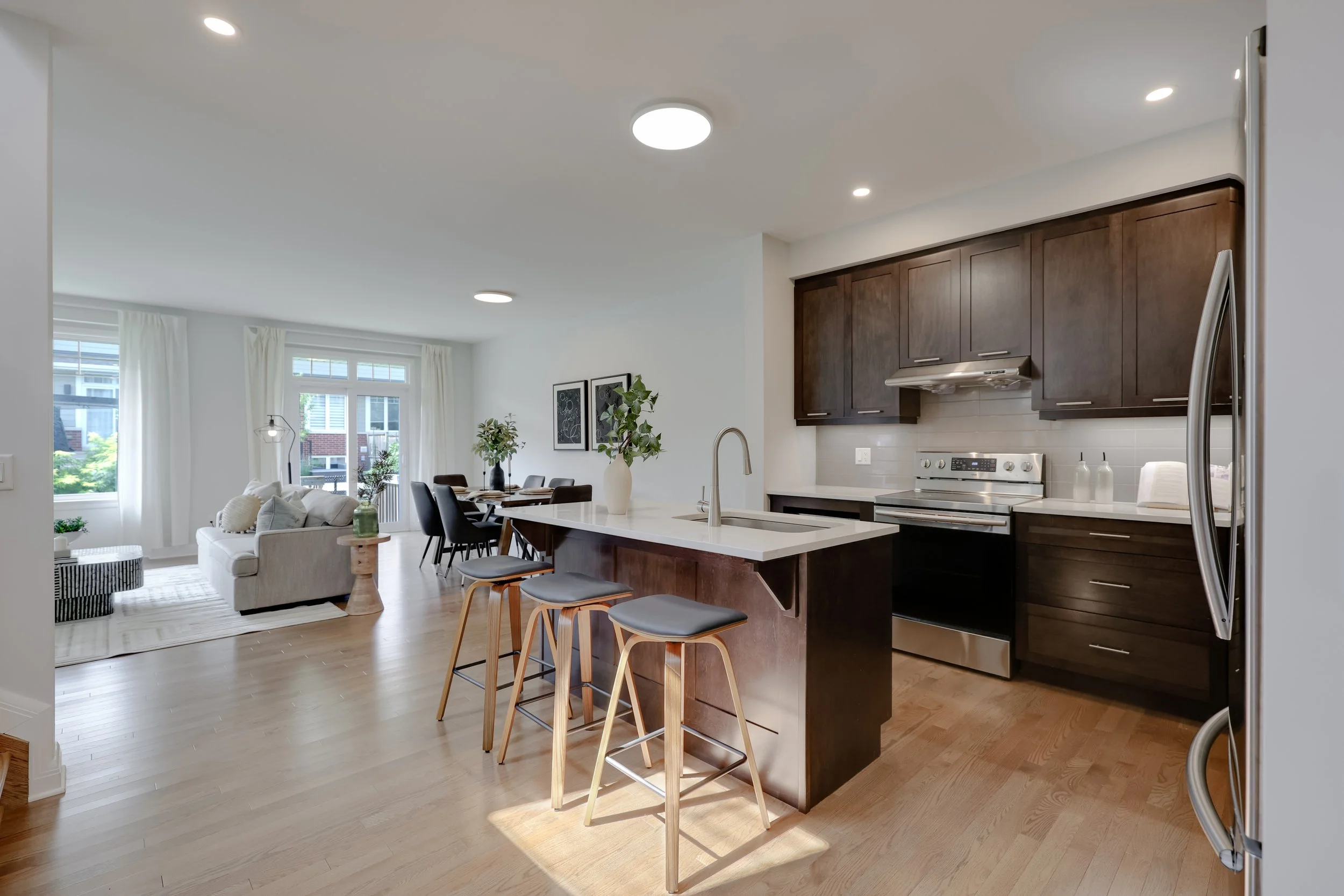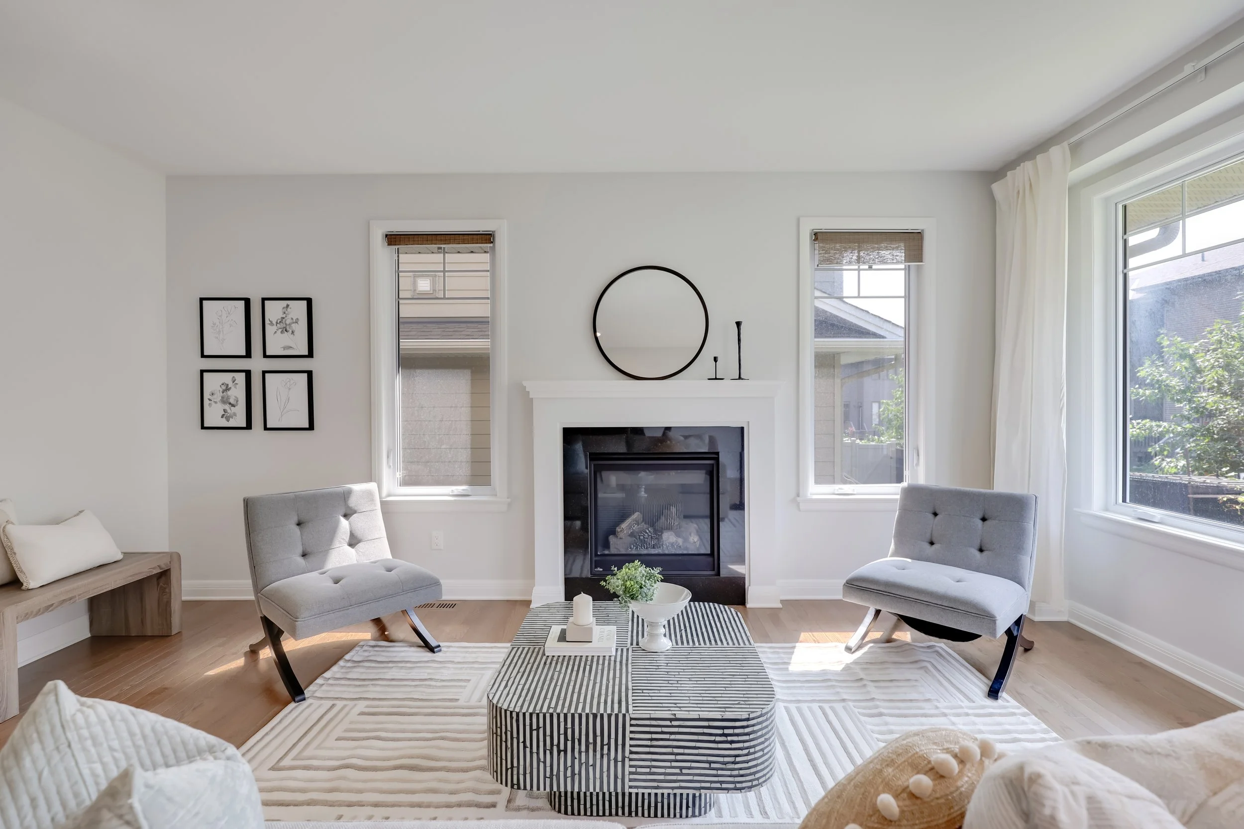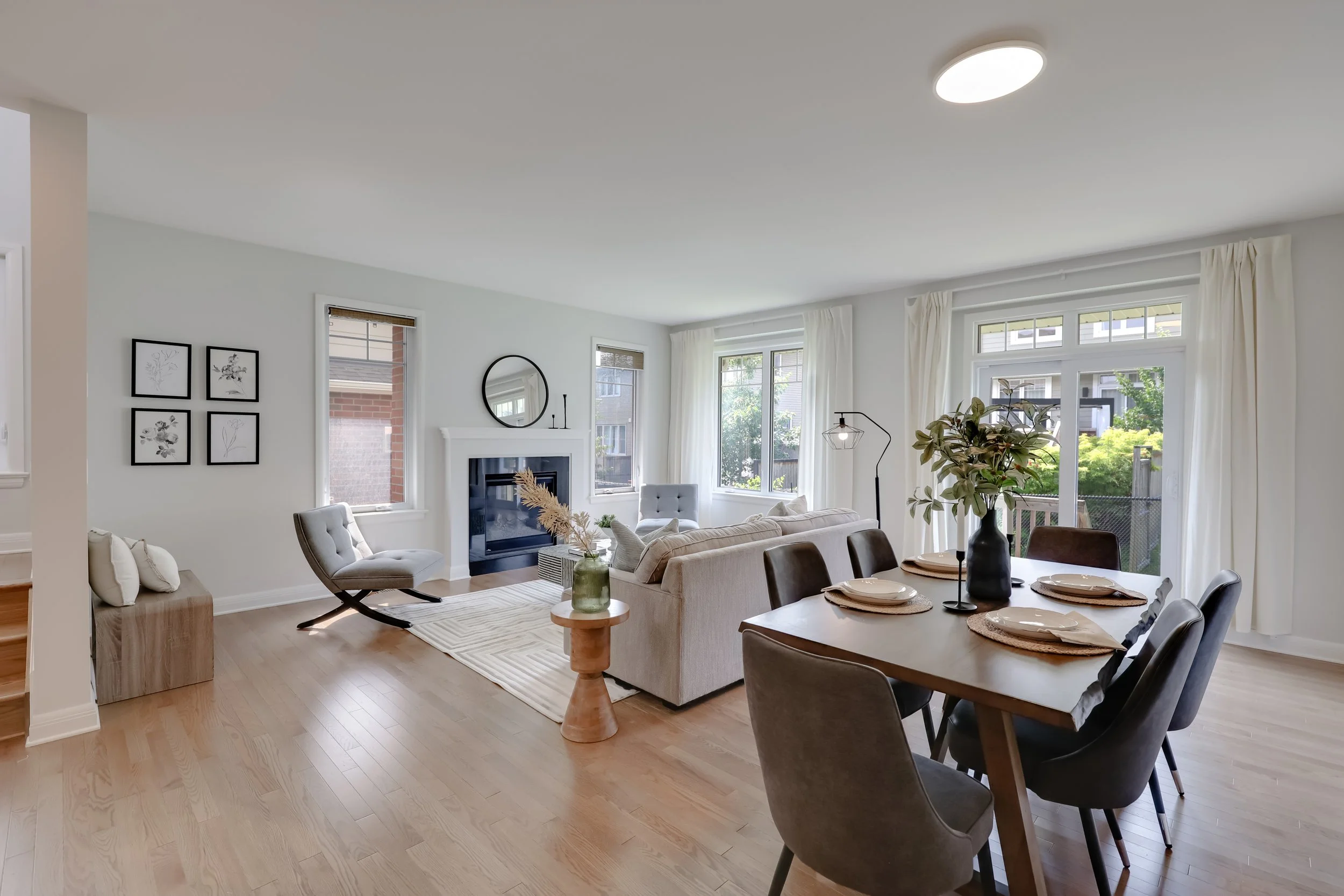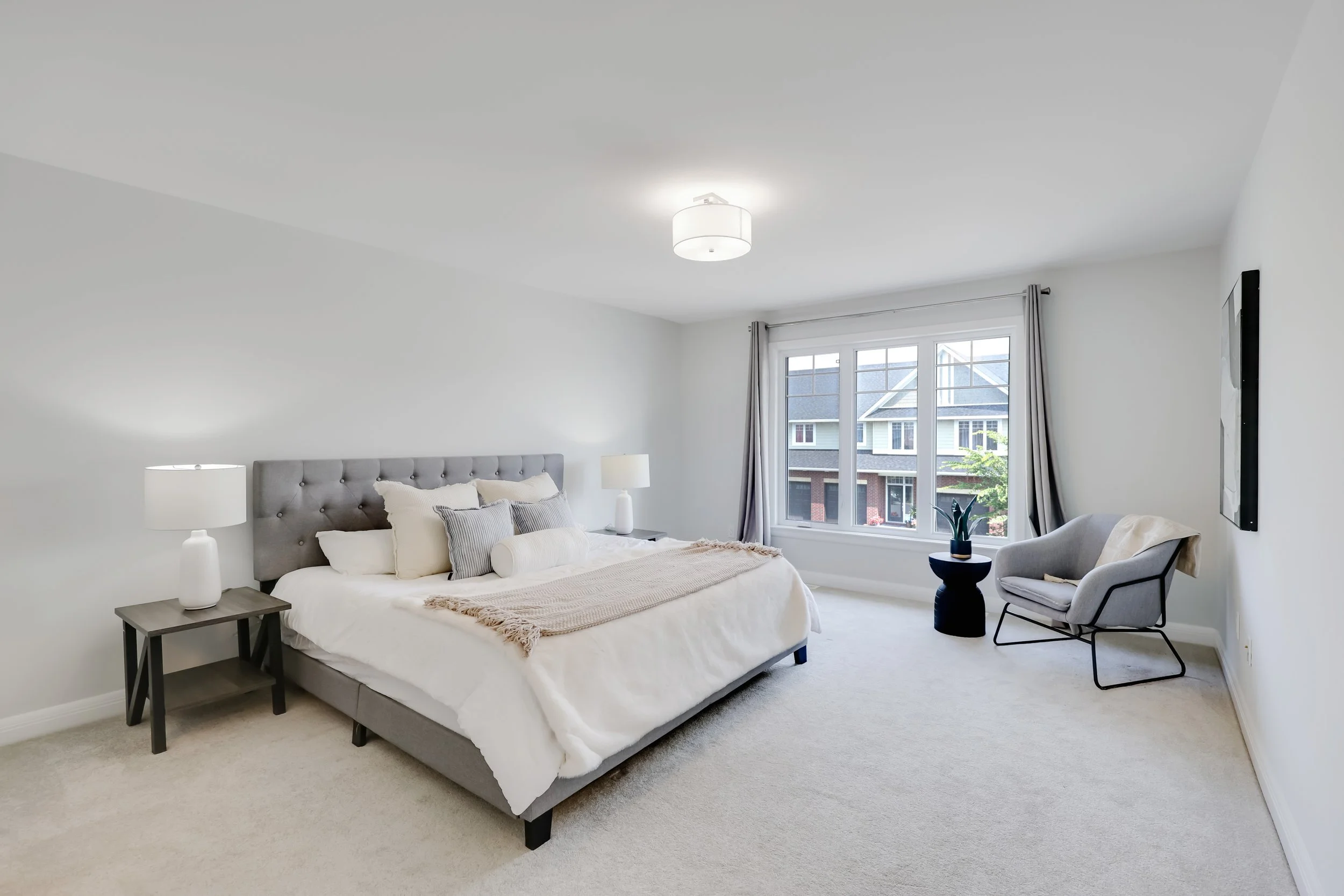 This project highlights how thoughtful staging transforms a clean, open layout into a warm and inviting retreat. With soft neutral tones, layered textures, and natural light flowing through oversized windows, we created a seamless connection between the living and dining spaces. The modern furniture and curated décor bring out the home’s best features—making it feel spacious yet cozy, sophisticated yet welcoming.